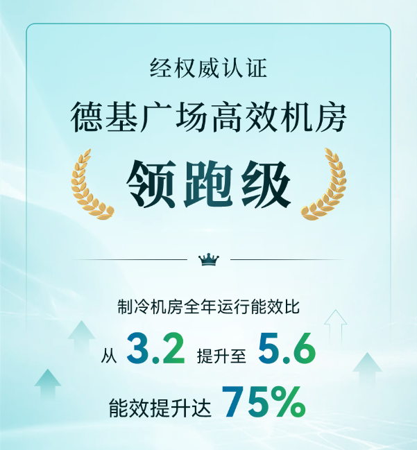 德基廣場1期高效機(jī)房節(jié)能改造項(xiàng)目,經(jīng)權(quán)威檢測(cè)制冷機(jī)房全年運(yùn)行能效比達(dá)5.6,機(jī)房系統(tǒng)被合肥通用機(jī)電產(chǎn)品檢測(cè)院認(rèn)證為“領(lǐng)跑級(jí)”。